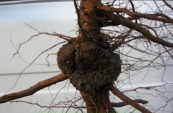- Признаки. Появление на корневой шейке, основных и боковых корнях опухлевых наростов — галлов. В начале заболевания наросты мелкие, мягкие и с гладкой поверхностью. По мере прогрессирования болезни увеличиваются в размере, приобретают твердую и бугристую поверхность. Осенью наросты разрушаются.