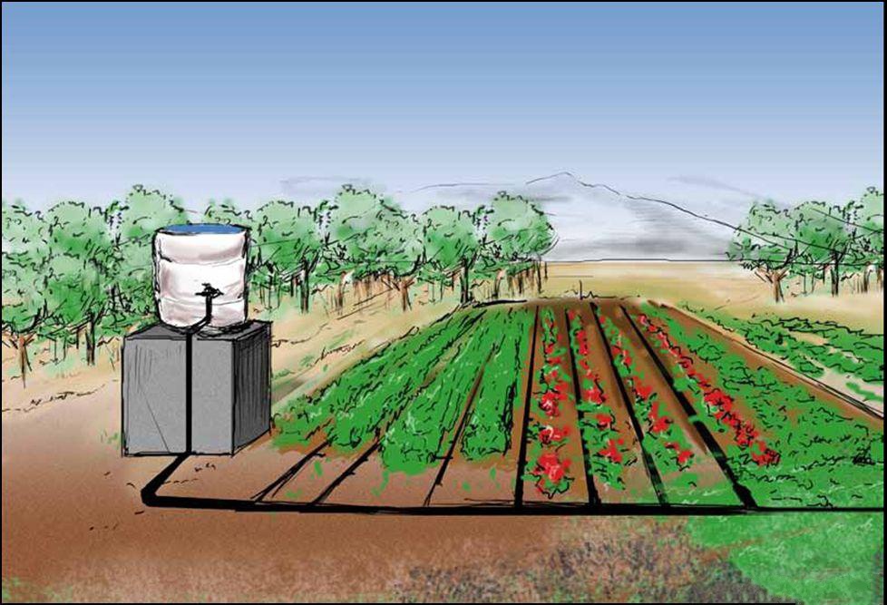 Перед тем, как организовать капельный полив своими руками, нужно установить накопительный резервуар. Поднимать его необходимо на уровень от 1,5 до 2,5 метров, дабы создать рабочее давления. Высота подъема зависит от того, насколько далеко располагается последняя грядка. Впрочем, если в системе будут предусмотрены раздаточные краны, способные перекрывать подачу влаги в определенные участки огорода, то необходимость поднимать резервуар слишком высоко отпадет. Что касается ее вместительности, здесь тоже все сугубо индивидуально. Отдать предпочтение лучше стандартной 200-литровой бочке из любого подходящего материала.