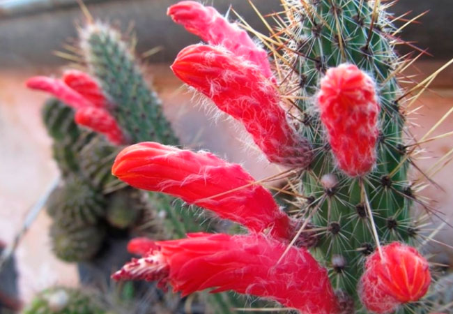• Клейстокактус туписийский (Cleistocactus tupizensis). Стебли у этого растения вертикальные, прямостоячие, высотой около 1 м. Отличительная черта – красно-рыжие колючки, густо обрамляющие побеги. Цветки также имеют яркий красный оттенок.