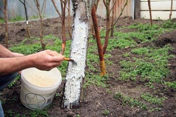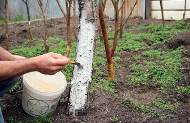 Потом известью белят штамб и основание ветвей и обвязывают ствол водонепроницаемой бумагой или толем, который защитит от грызунов.