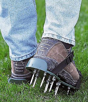 1. Сандалии-аэраторы. На подошве таких сандалий прикреплены острые шипы. Все, что вам нужно сделать — пройтись по газону в такой обуви.