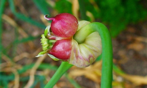 После цветения каждый цветок чеснока образует воздушную луковичку (так называемую бульбочку), используемую для размножения